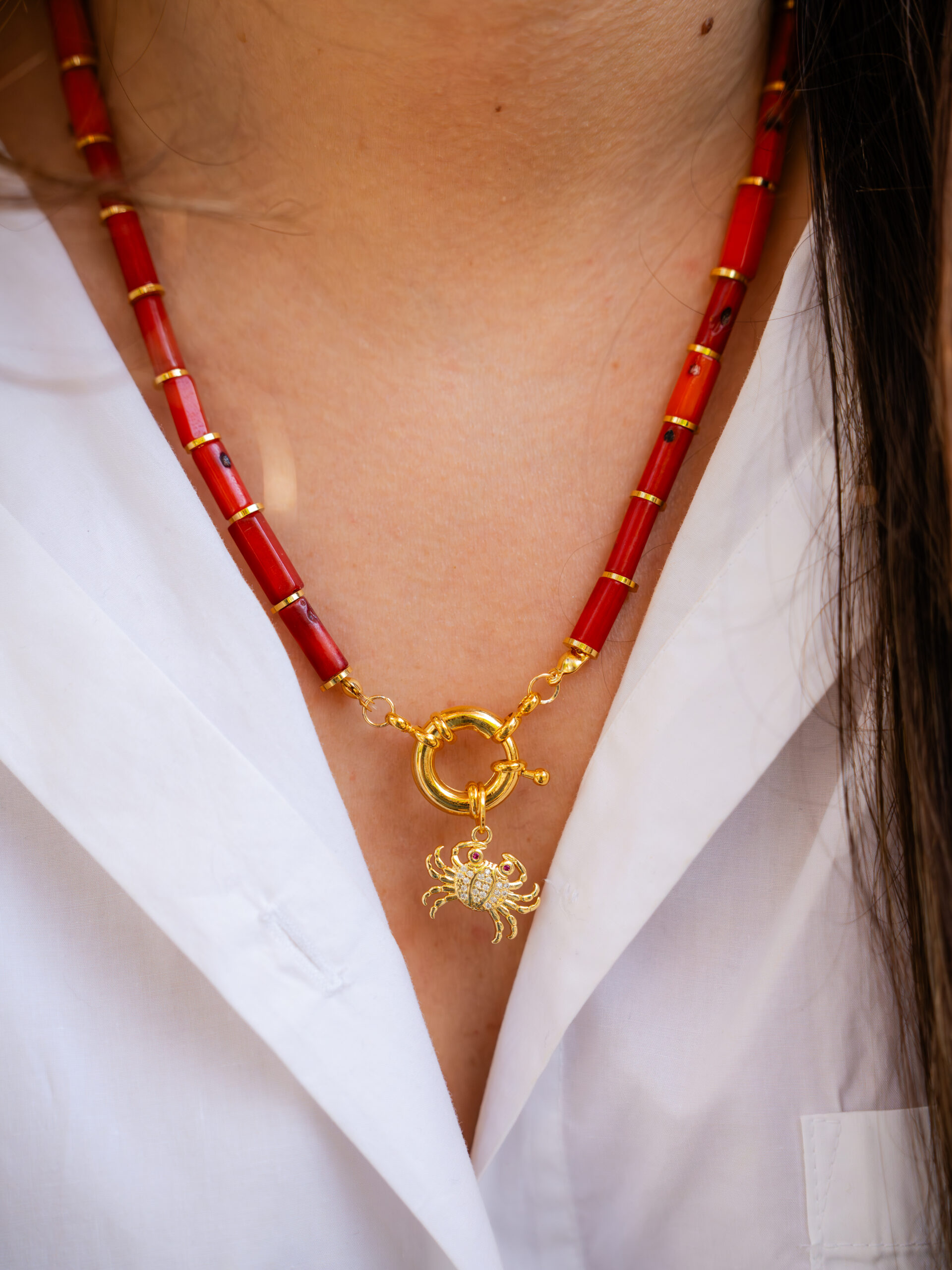 Doğal mercan taşı kullanılmıştır. Kullanılan materyaller çeliktir, kararma yapmamaktadır.