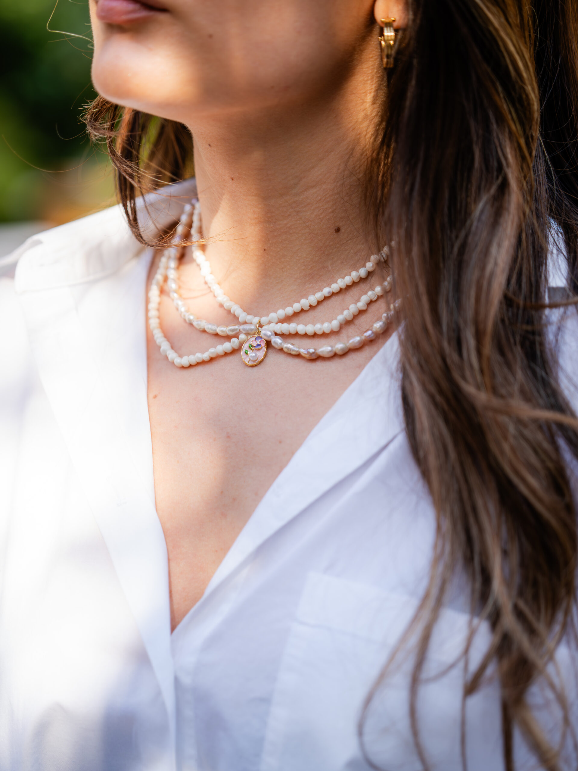 Gerçek inci kullanılmıştır. Bu sebeple inciler arasında boyut farklılığı olabilmektedir.