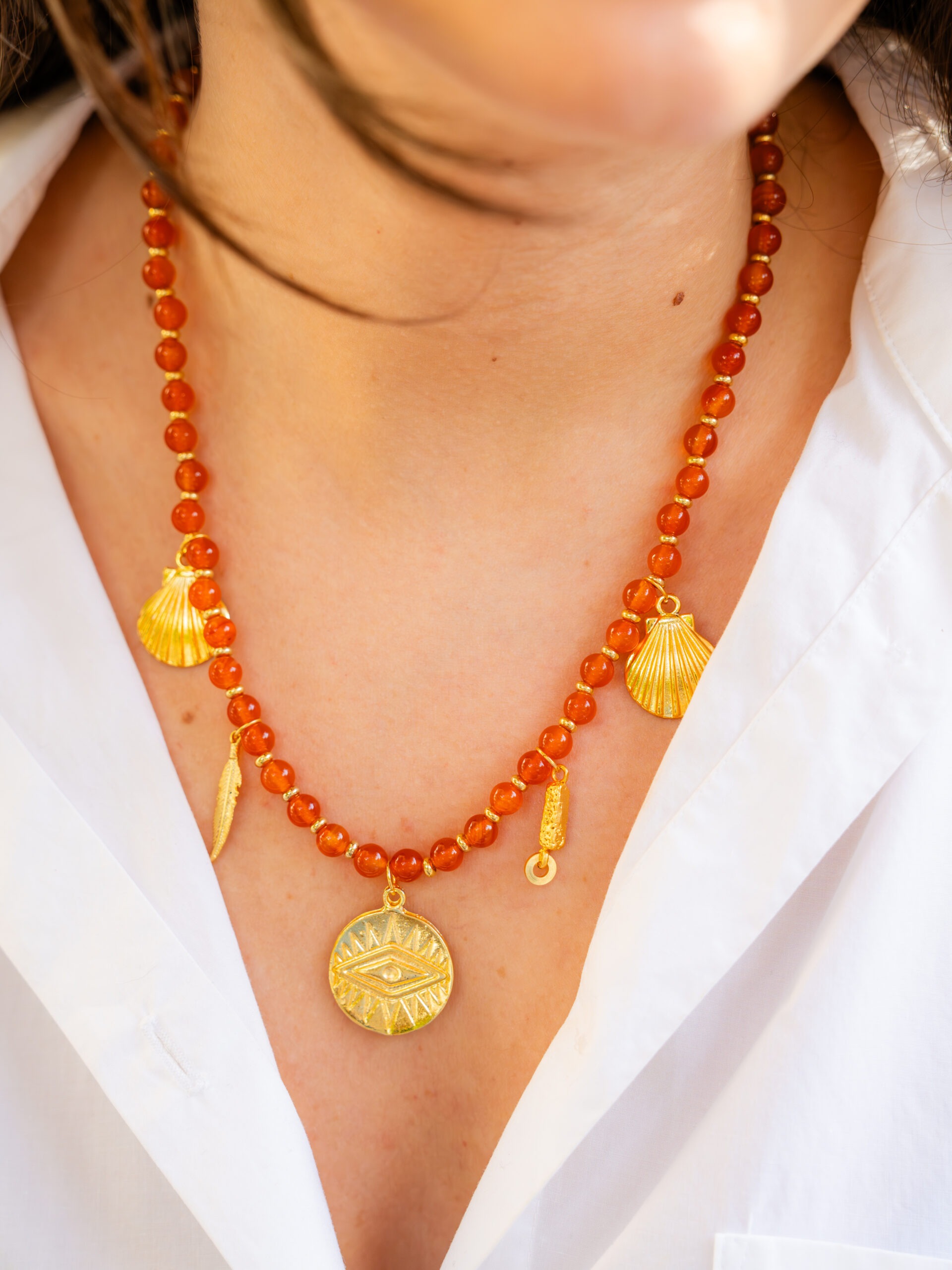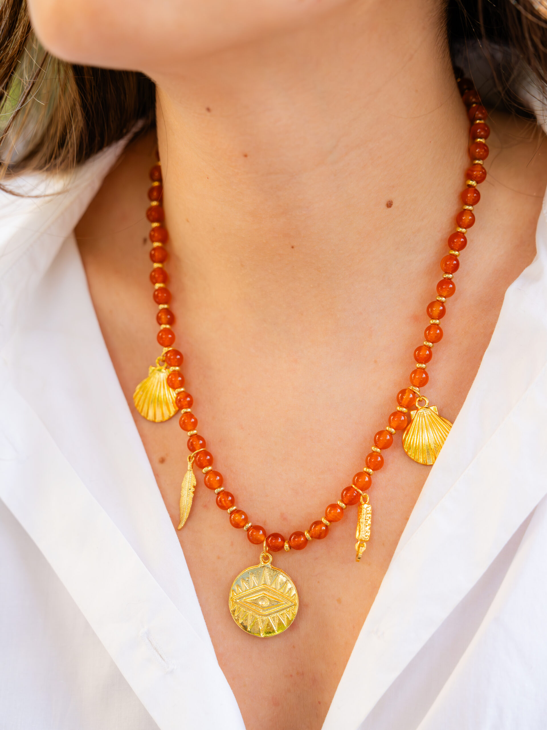 Gerçek akik taşı kullanılmıştır. Kullanılan kolye uçları çeliktir.