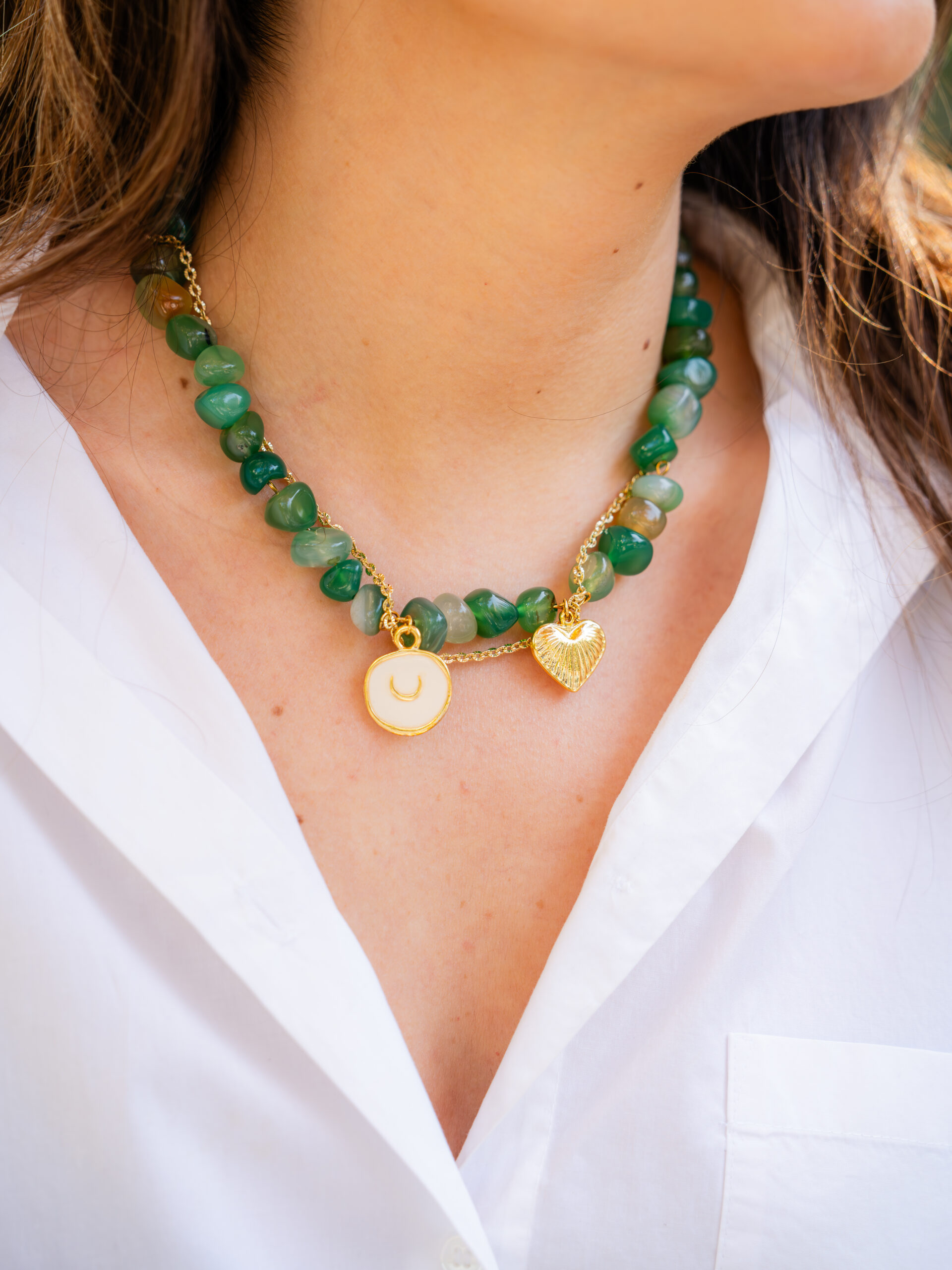 Doğal yeşil riyolit taşı kullanılmıştır. Kullanılan zincir modeli xuping olup, kararma yapmamaktadır.