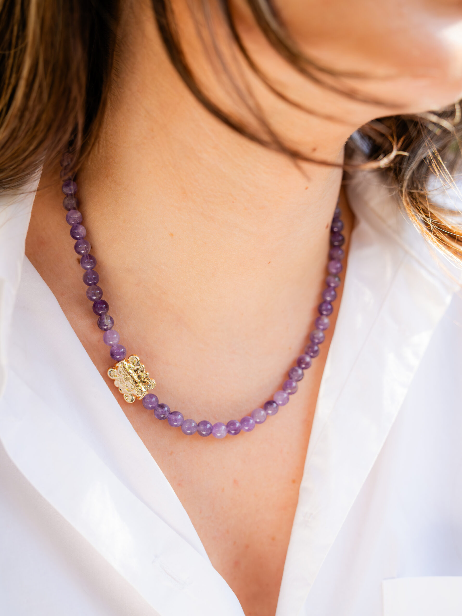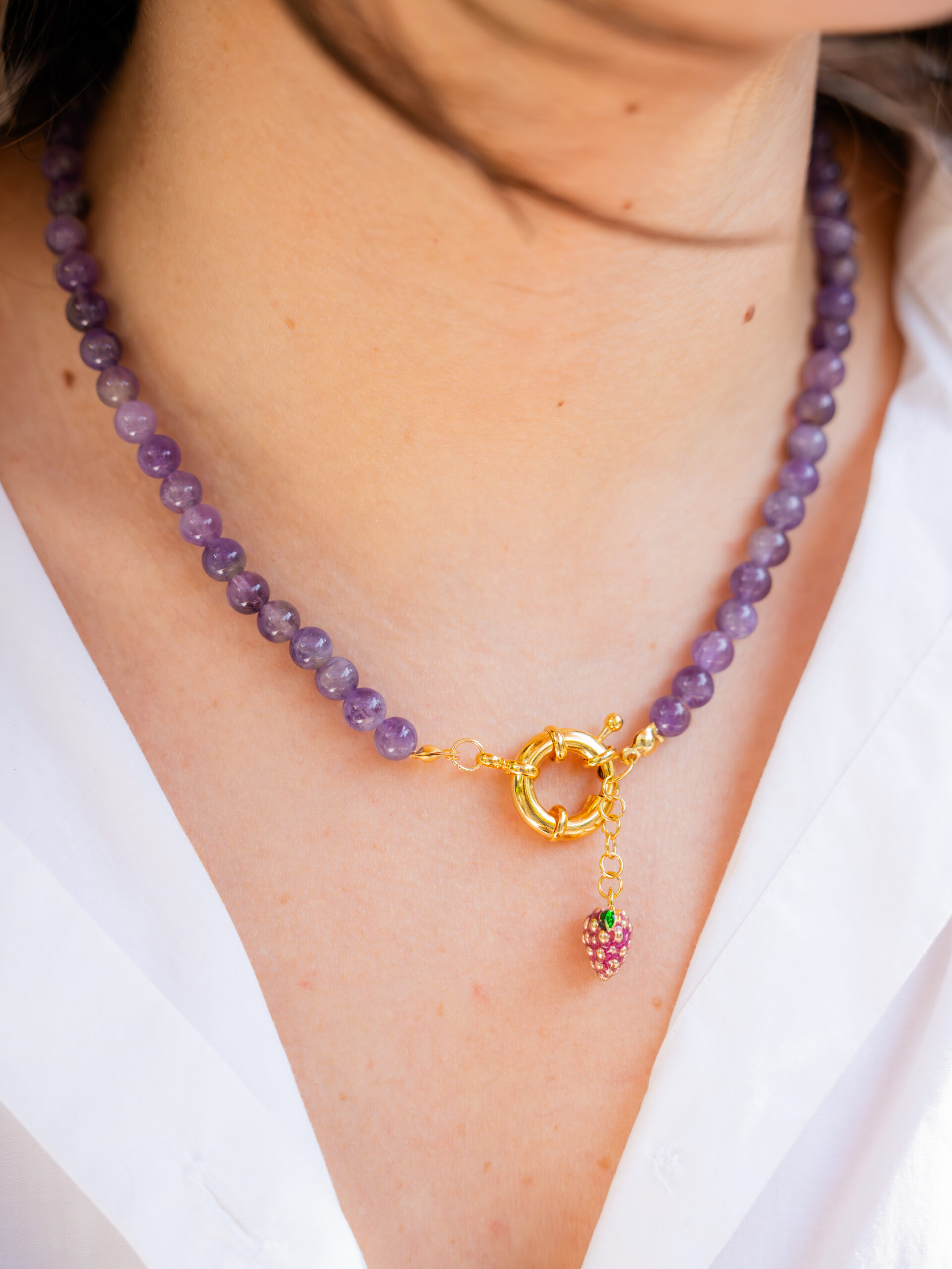 Doğal ametist taşı kullanılmıştır. Kullanılan materyaller çeliktir, kararma yapmamaktadır.